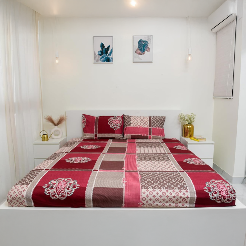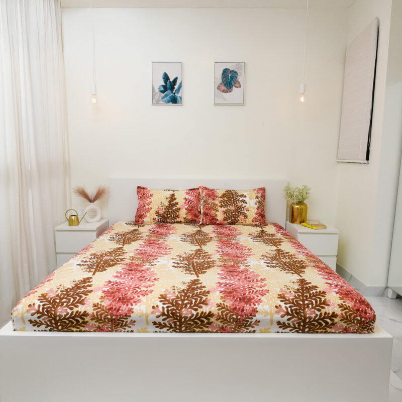 Vibrant cotton bedsheet set for cozy, colorful, stylish sleep space.
