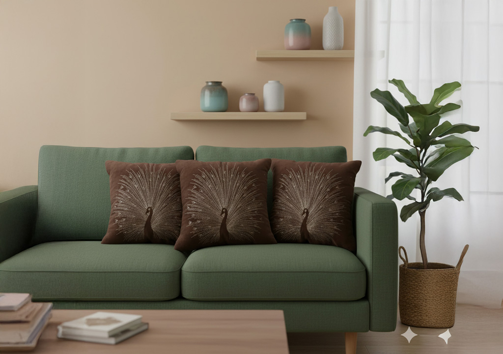 VAA HOME DECOR Peacock Cushion Cover