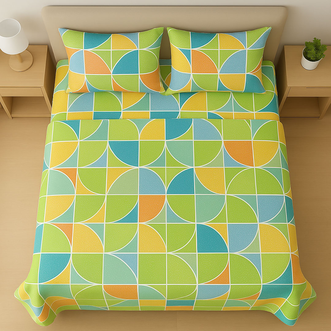100% Cotton Geometric Prism Printed Double Bedsheets