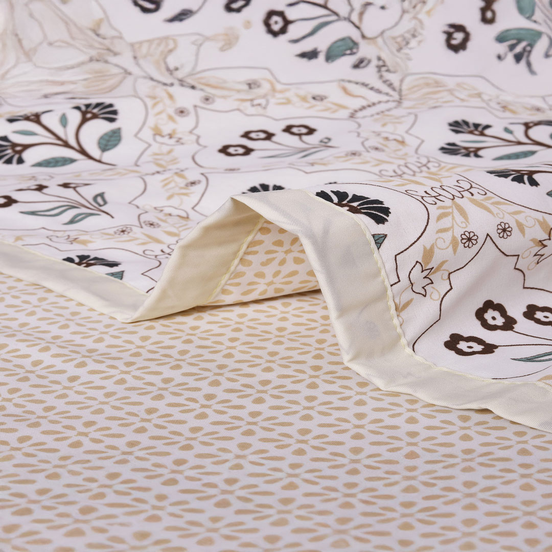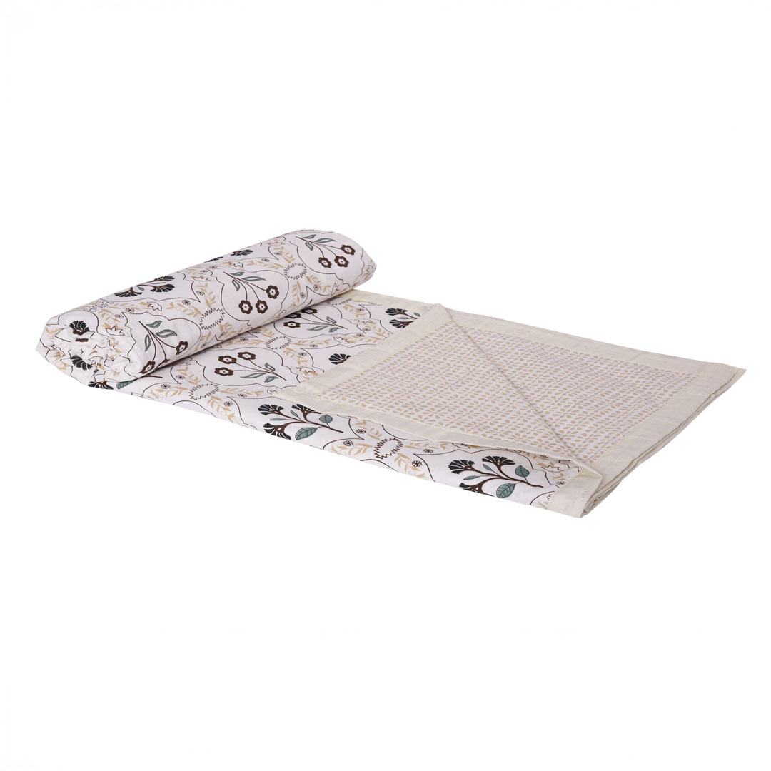 Featuring an elegant beige leaf print on one side and a soft coordinating pattern on the reverse, this dohar offers style and versatility in one cozy package. Crafted with 100% cotton flannel and filled with a lightweight 110 GSM layer, it’s perfect for mild winters, cool summer nights, or air-conditioned rooms. The breathable fabric ensures you stay warm without overheating, while the reversible design gives you two charming looks in one.