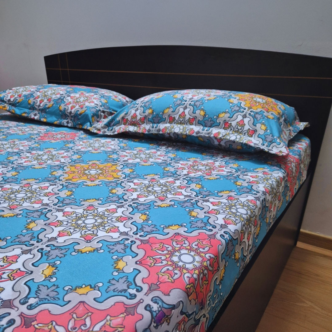 Double Cotton Feel Bedsheet with Pillow Cover – Royal Flower Printed