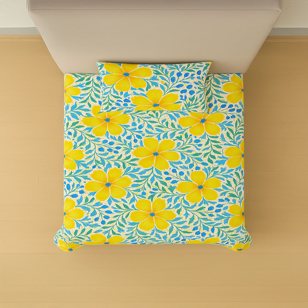 Single Sunny Bloom Print Bedsheets Set – 144 TC 100% Cotton