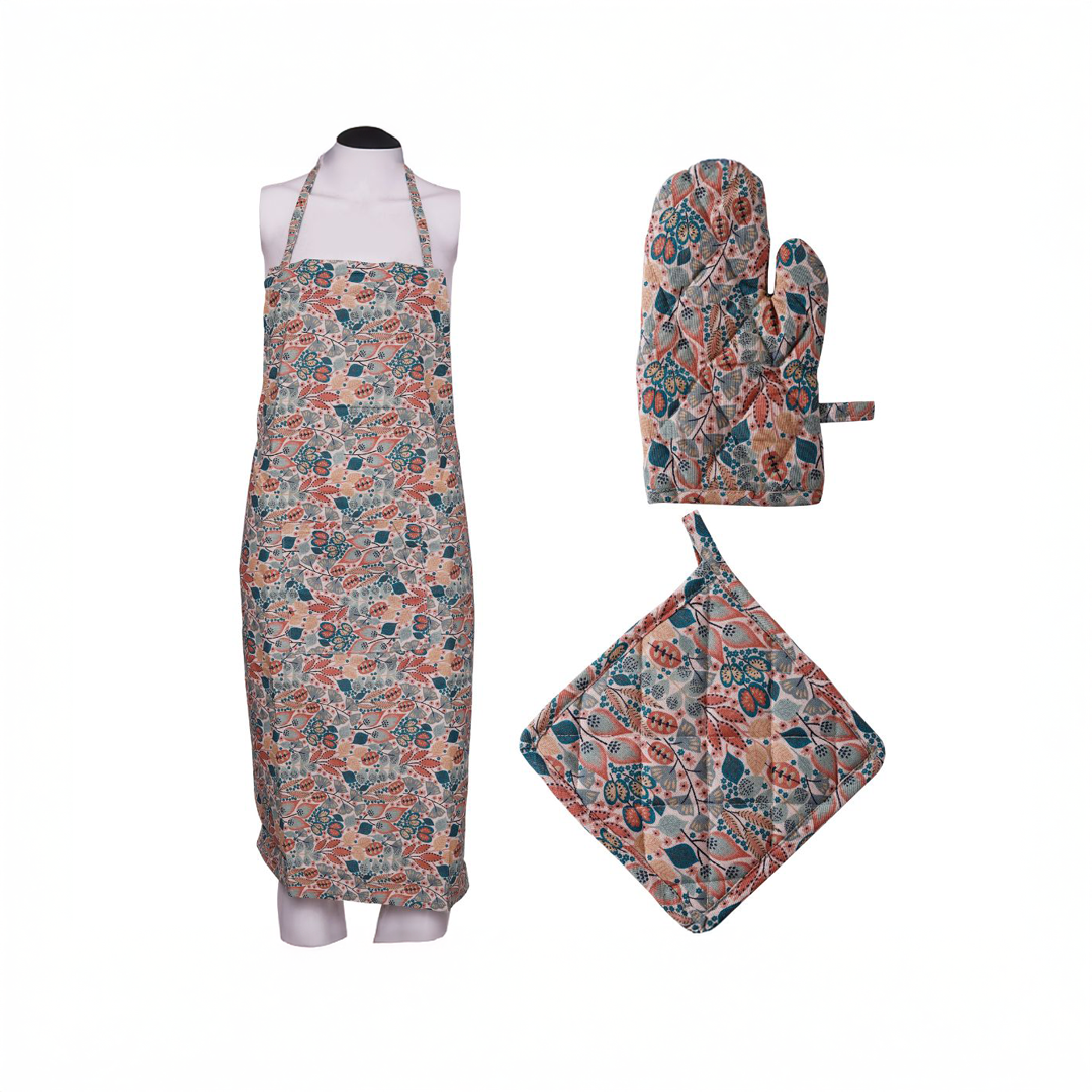 - Net Quantity: 3 pieces (1 Apron, 1 Pair of Mittens, 1 Pot Holder)