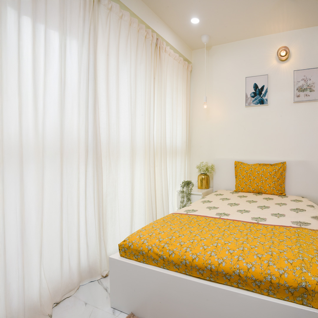 Soft and breathable 100% cotton single bedsheet featuring a beautiful yellow floral design that adds a bright and elegant touch to your bedroom. Made with 144 thread count for everyday comfort, it is lightweight, durable, and gentle on the skin, and comes with 1 matching pillow cover for a complete and coordinated look.