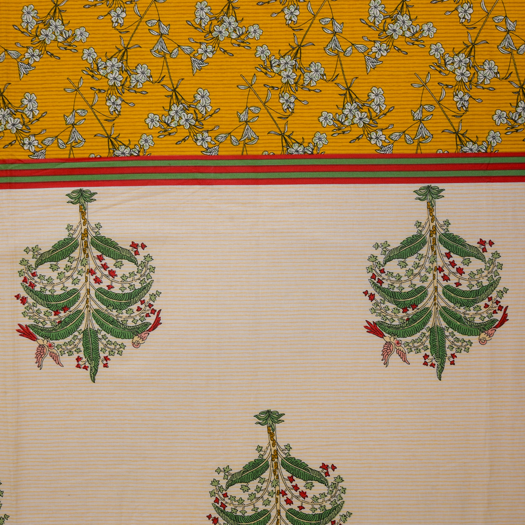 Designed to add a bright and elegant touch to your bedroom, this yellow floral design single bedsheet features a beautiful pattern that brings freshness and charm to any space. Made from soft and breathable 100% cotton, it ensures all-day comfort with a smooth and skin-friendly feel. Perfect for everyday use, kids’ rooms, or guest spaces.
