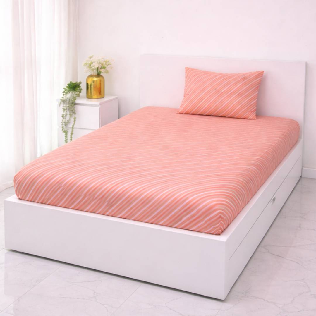 Soft and durable polycotton single bedsheet featuring a stylish pink geometric design that adds a modern and vibrant touch to your bedroom. Made with 140 GSM micro fabric, it is lightweight, breathable, wrinkle-resistant, and easy to maintain, offering comfortable everyday use without pillow covers.