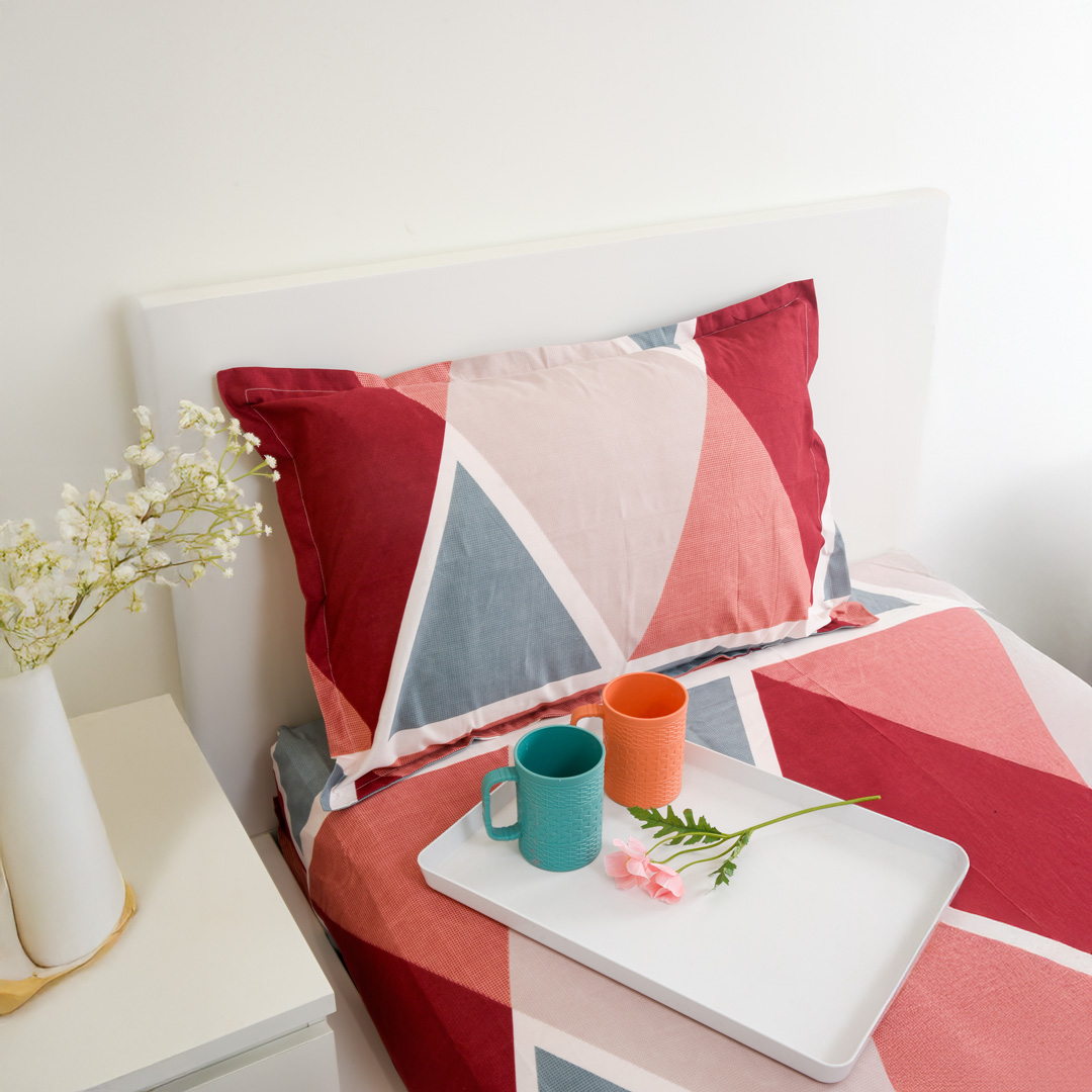 Featuring a vibrant combination of red and green tones, this bedsheet combo adds a bold and lively touch to your bedroom. Its minimal yet stylish design blends effortlessly with any interior, making it perfect for everyday use, guest rooms, or contemporary spaces. Crafted from polycotton fabric, it ensures breathable comfort and a smooth, soft feel for a restful sleep in every season.