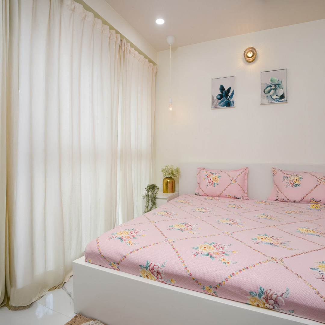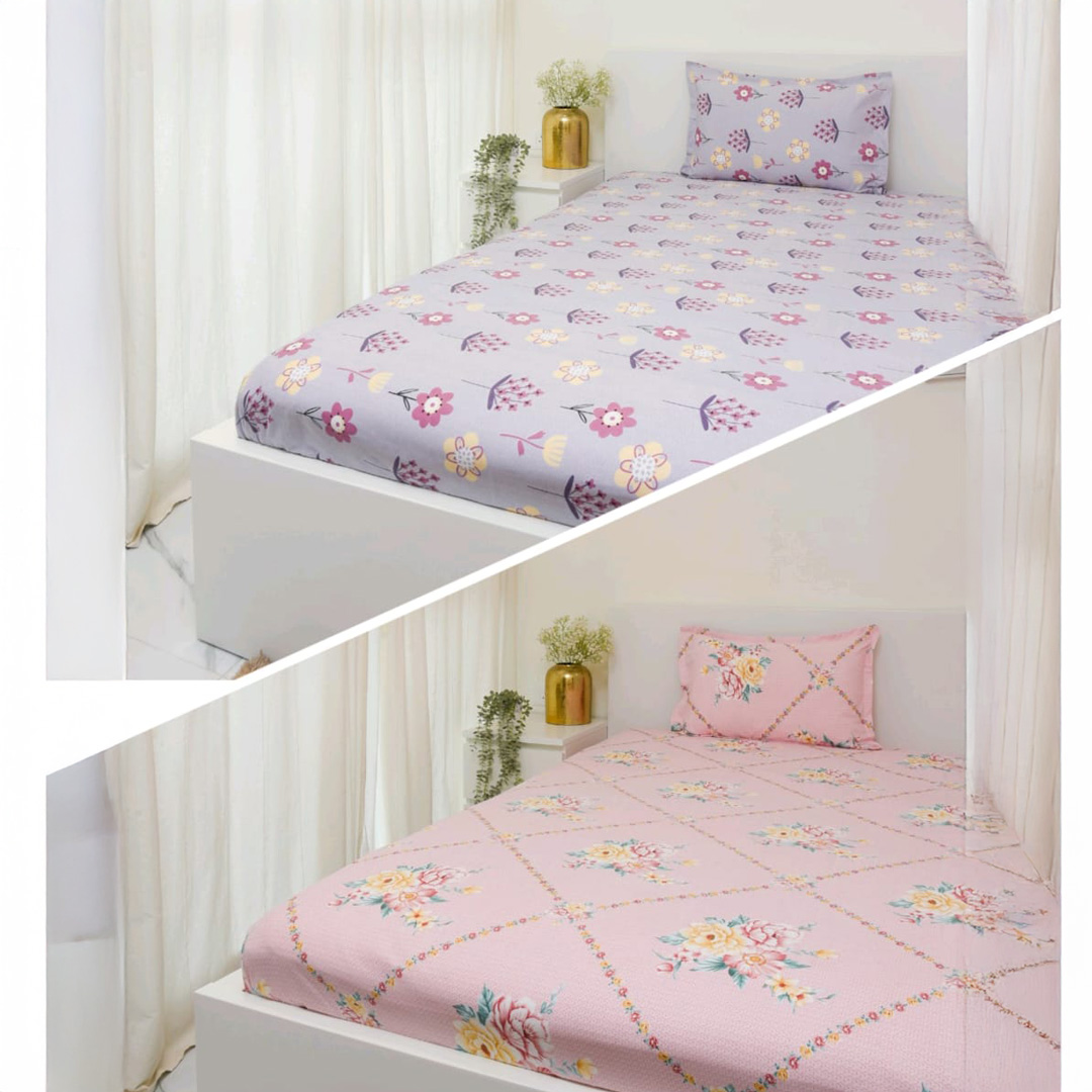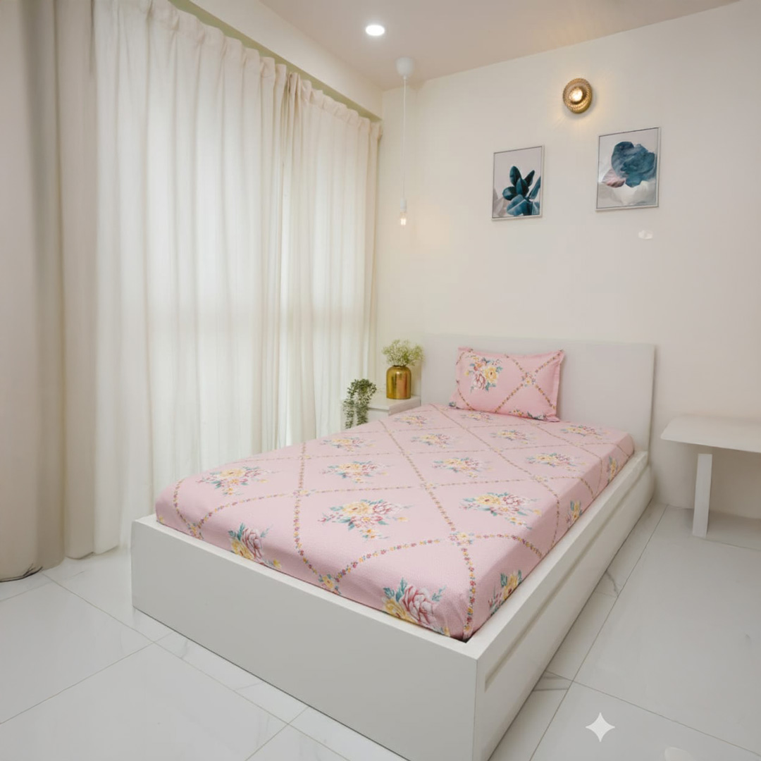 Featuring a soothing combination of pink and blue tones, this bedsheet combo adds a soft and refreshing touch to your bedroom. Its minimal yet stylish design blends effortlessly with any interior, making it perfect for everyday use, guest rooms, or contemporary spaces. Crafted from polycotton fabric, it ensures breathable comfort and a smooth, soft feel for a restful sleep in every season.