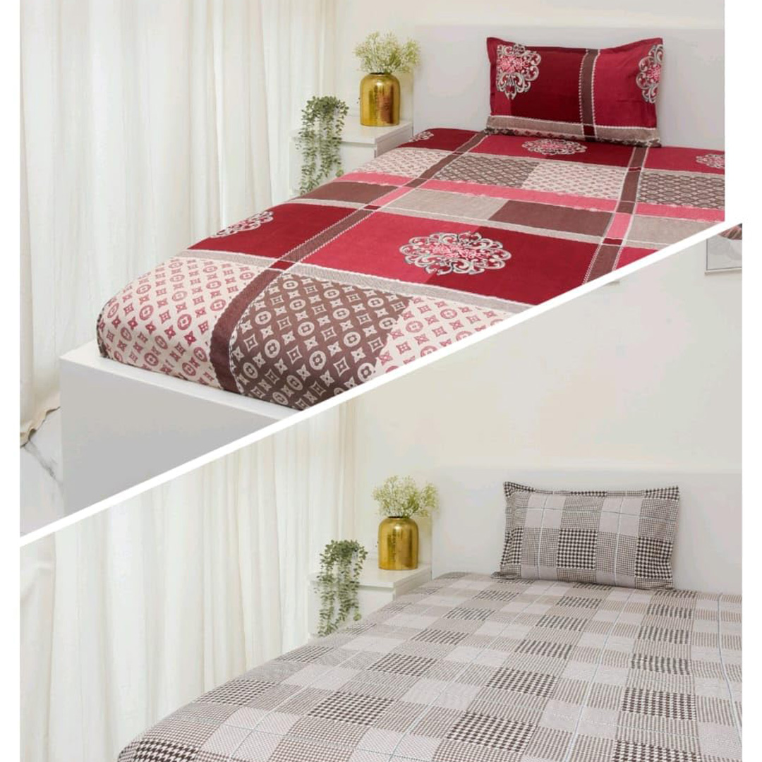 Featuring a rich combination of maroon and light brown tones, this bedsheet combo adds a warm and elegant touch to your bedroom. Its minimal yet stylish design blends effortlessly with any interior, making it perfect for everyday use, guest rooms, or contemporary spaces. Crafted from polycotton fabric, it ensures breathable comfort and a smooth, soft feel for a restful sleep in every season.