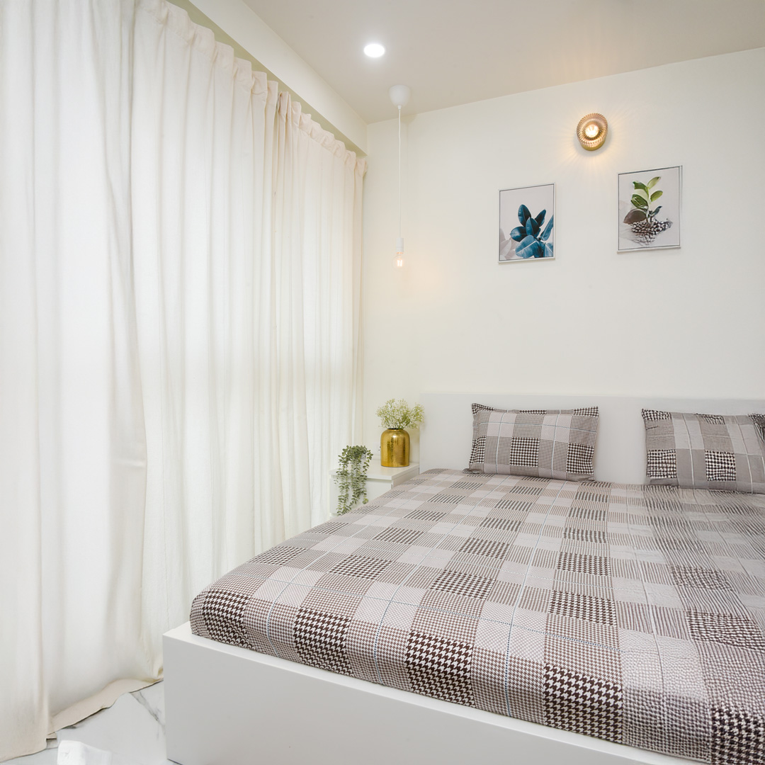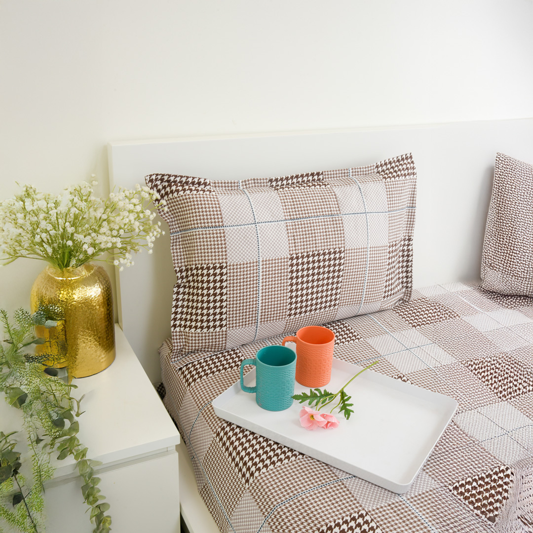 Soft and durable polycotton single bedsheet in a rich brown checks design that adds warmth and timeless elegance to your bedroom. Made with breathable 140 GSM micro fabric, it offers a smooth, skin-friendly feel and lightweight comfort for everyday use, while being wrinkle-resistant, easy to maintain, and suitable for all seasons without pillow covers.