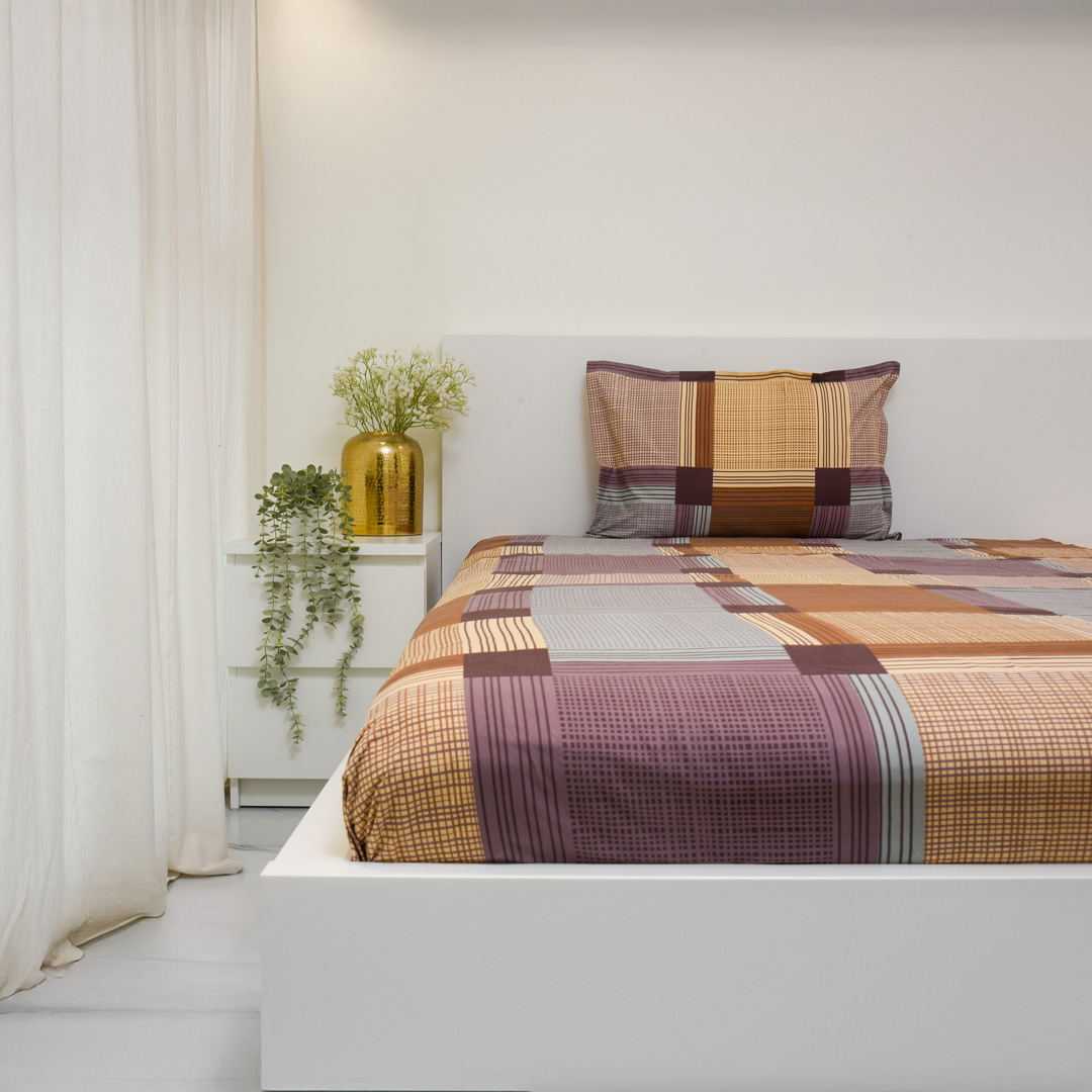 Soft and durable polycotton single bedsheet featuring a bold red diamond design that adds a striking and modern touch to your bedroom. Made with 140 GSM micro fabric, it is lightweight, breathable, wrinkle-resistant, and easy to maintain, and comes with 1 matching pillow cover for a complete and coordinated look.