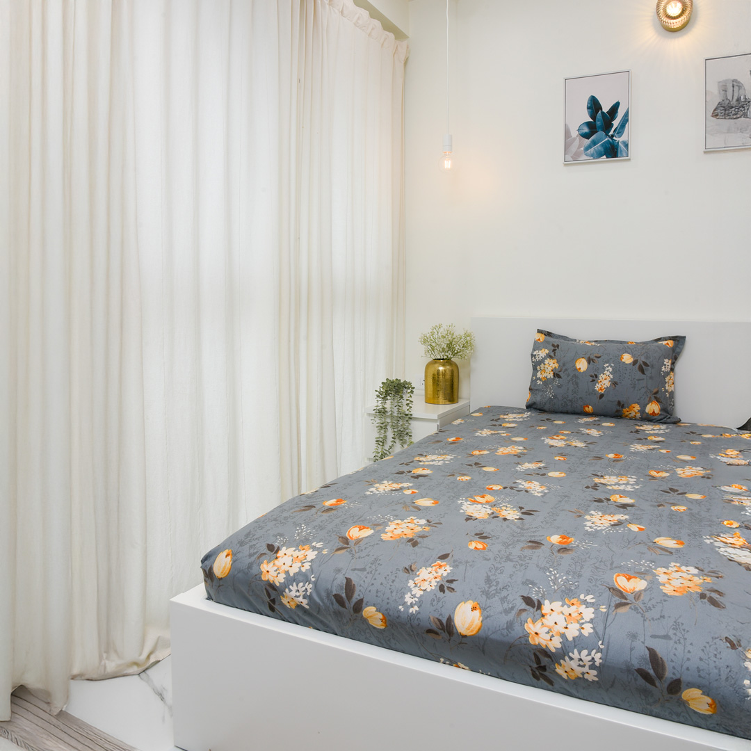 Soft and durable polycotton single bedsheet featuring an elegant light grey floral design that adds a subtle and sophisticated touch to your bedroom. Made with 140 GSM micro fabric, it is lightweight, breathable, wrinkle-resistant, and easy to maintain, and comes with 1 matching pillow cover for a complete and coordinated look.