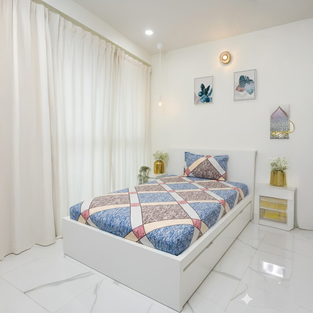 Soft and durable polycotton single bedsheet featuring a stylish blue wave design that adds a calm and modern touch to your bedroom. Made with 140 GSM micro fabric, it is lightweight, breathable, wrinkle-resistant, and easy to maintain, and comes with 1 matching pillow cover for a complete and coordinated look.