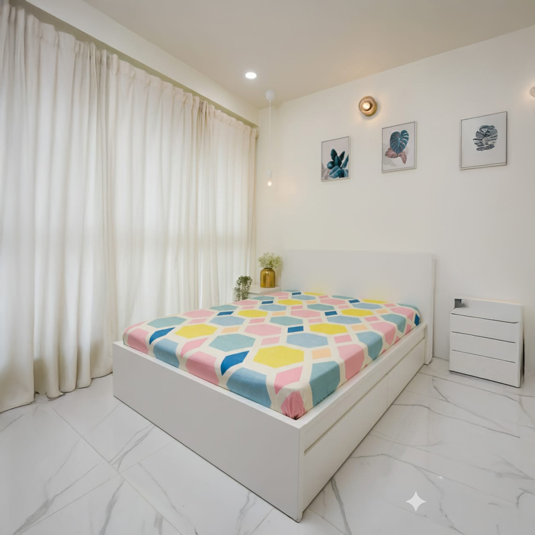 Soft and durable polycotton single bedsheet featuring a stylish pink geometric design that adds a modern and vibrant touch to your bedroom. Made with 140 GSM micro fabric, it is lightweight, breathable, wrinkle-resistant, and easy to maintain, offering comfortable everyday use without pillow covers.
