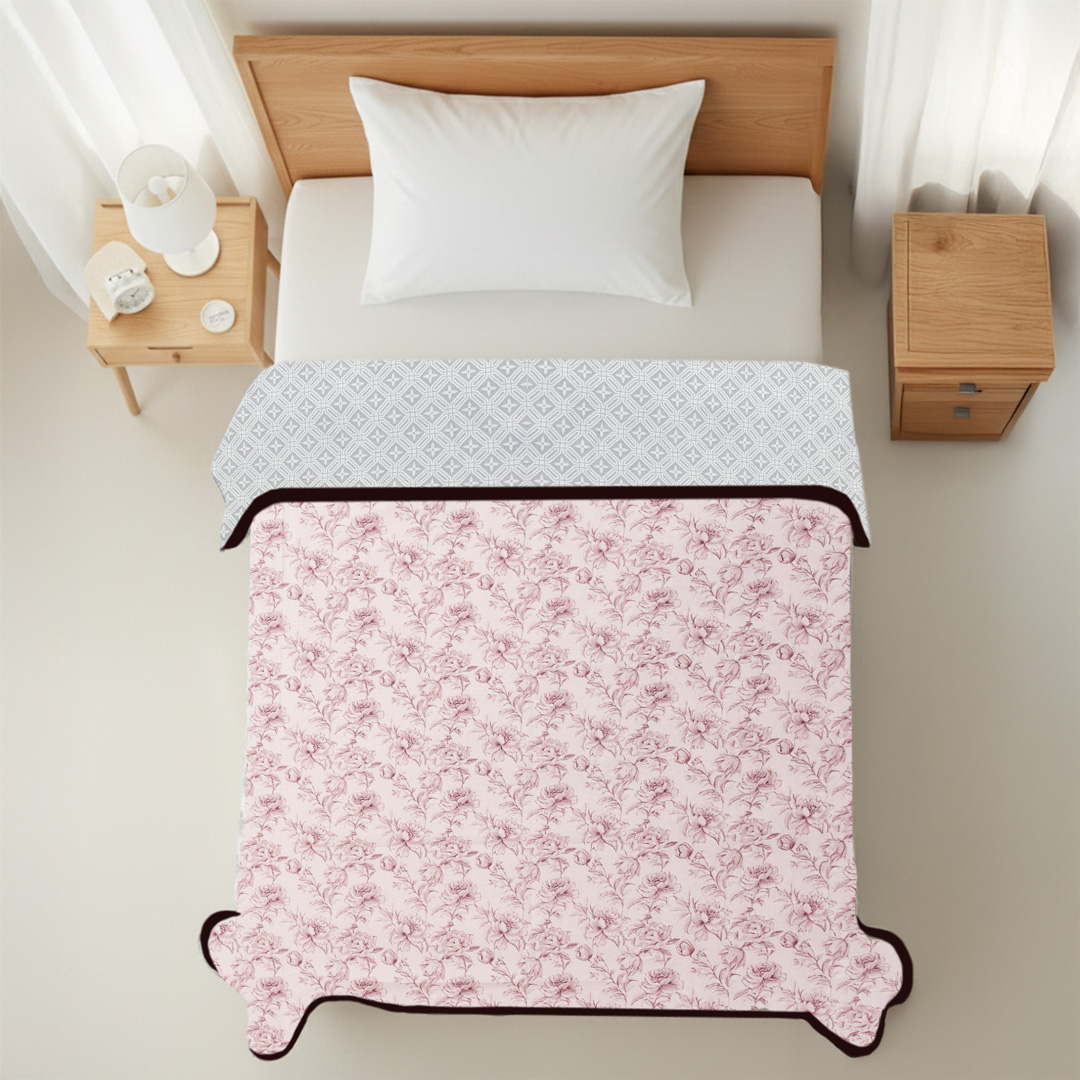 Experience soft and breathable comfort with this lightweight cotton dohar, perfect for all-season use. Crafted with gentle, skin-friendly fabric and a light flannel layer, it provides cozy warmth without feeling heavy. The vintage rose floral design adds a classic and elegant charm to your bedroom décor, making it a perfect blend of timeless style and everyday comfort.